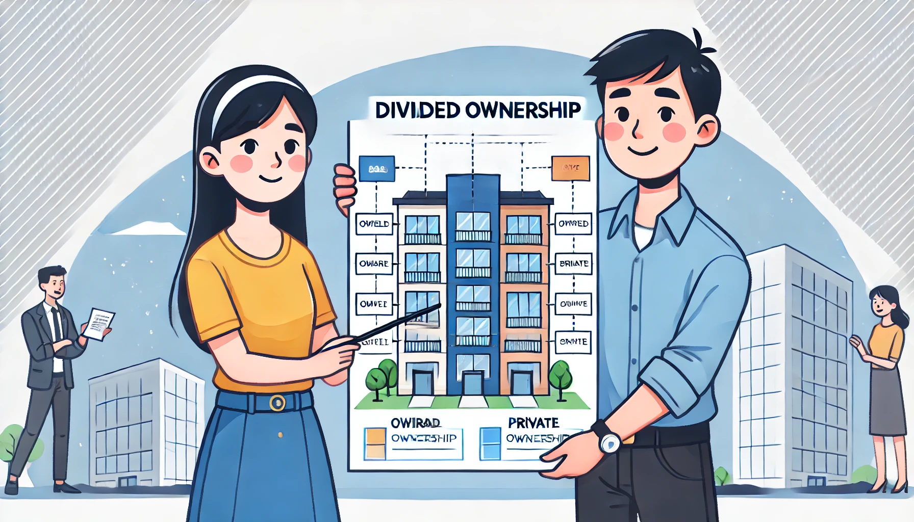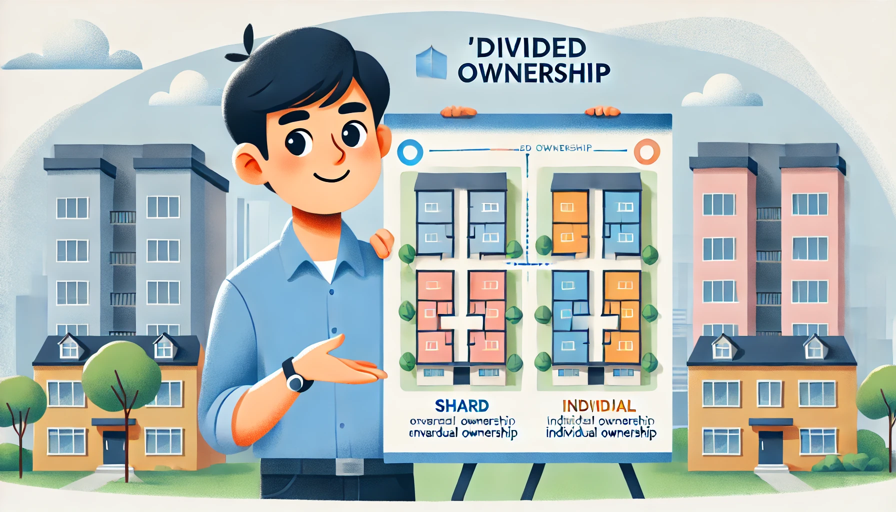 - 공유는 한 건물을 여러 사람이 공동으로 소유하여 건물 전체에 대한 지분을 가지는 방식입니다. 특정 부분이 독립적으로 소유자에게 속하지 않으며, 모든 소유자가 건물에 대한 지분을 나누어 갖습니다.